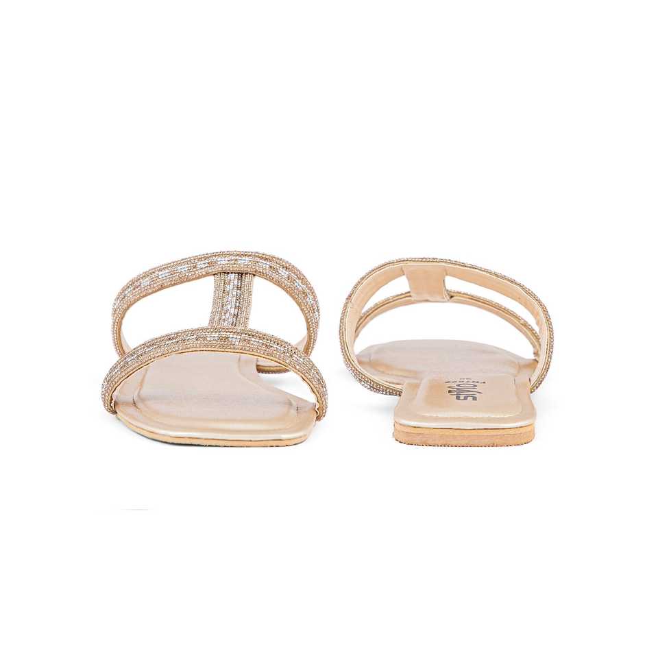 Sandales à talons dorées FN7822 Pantoufle élégante avec un design complexe