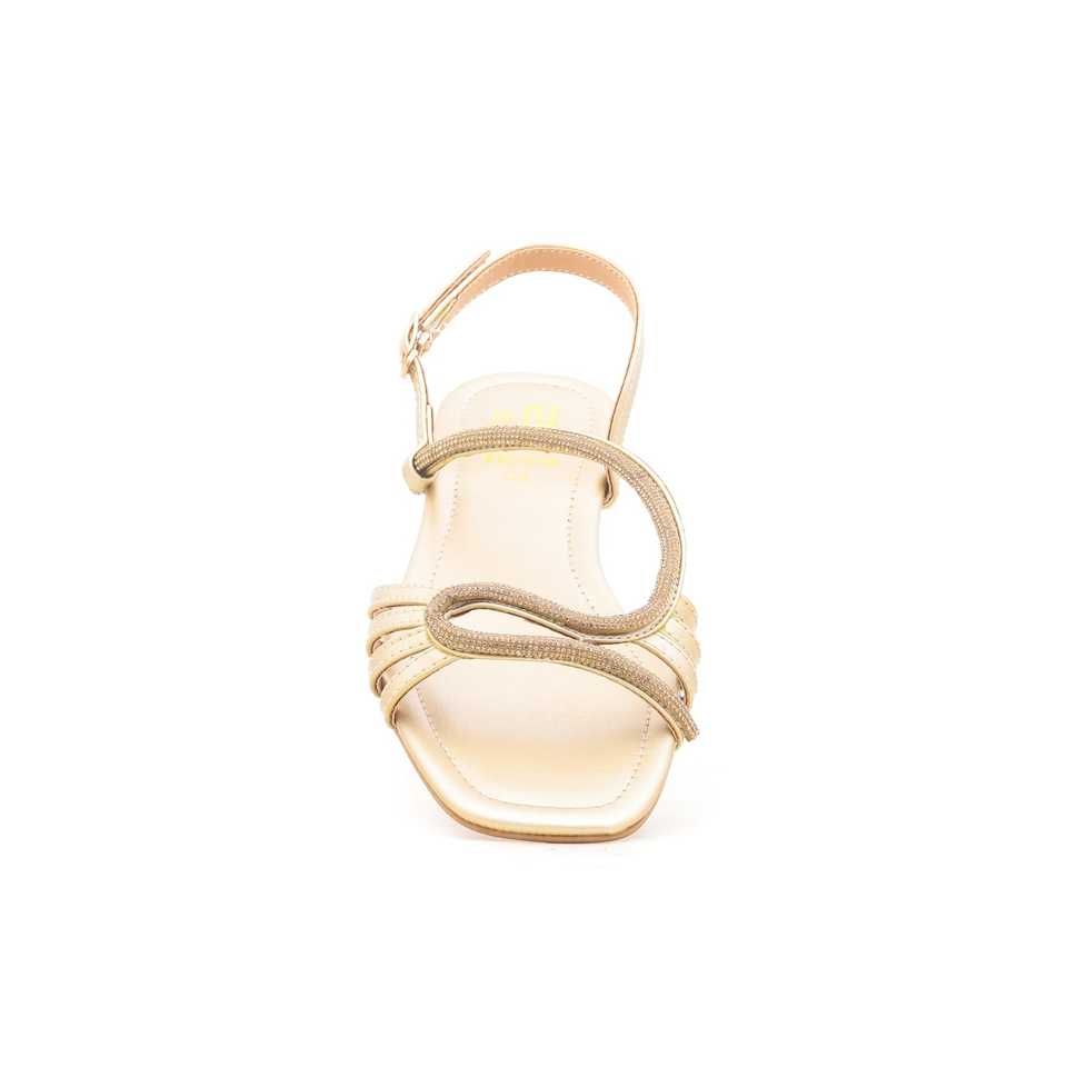 Sandales fantaisie dorées FN5515 bout ouvert bride à la cheville talons plate-forme à la mode Satin supérieur PU semelle intérieure pour les activités de plein air d'été