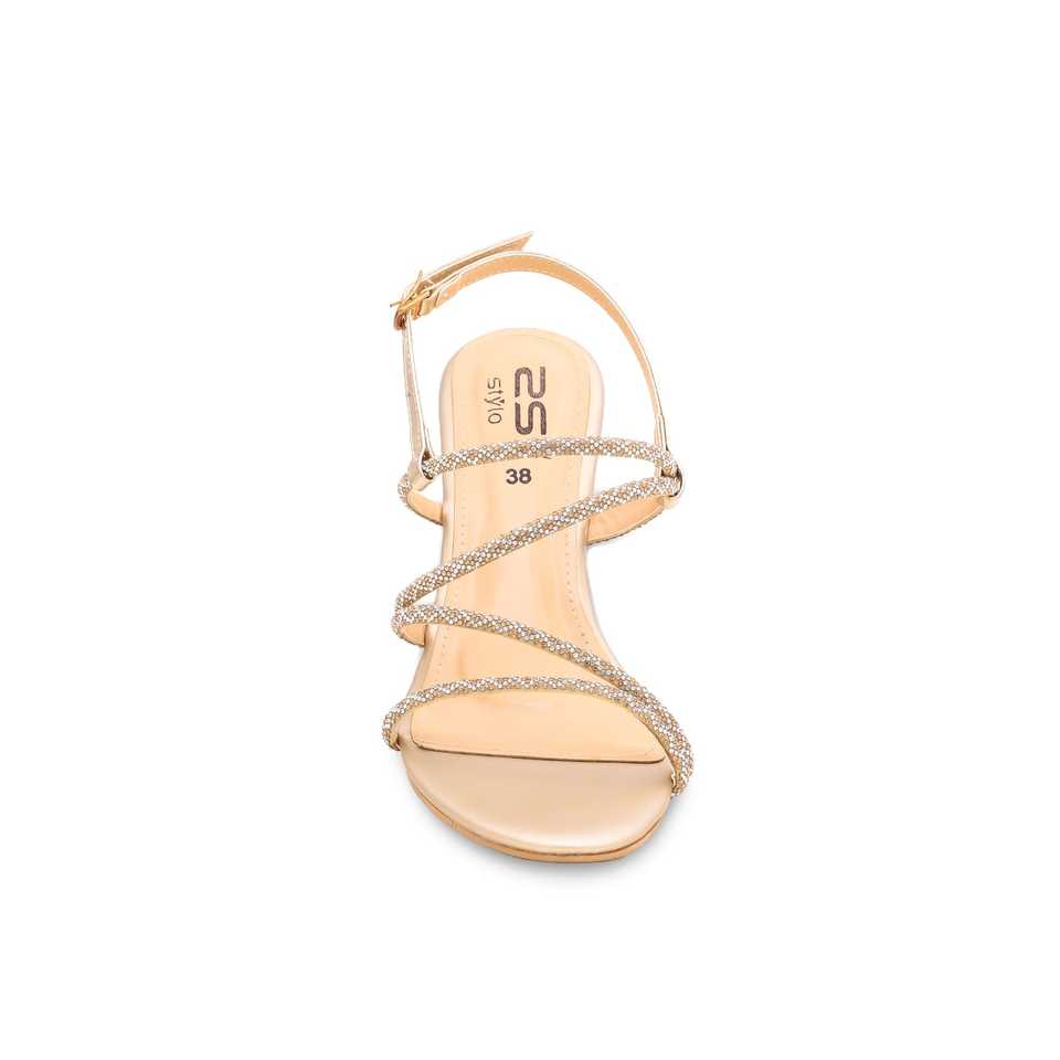 Sandales fantaisie dorées FN5802 bout ouvert bride à la cheville talons plate-forme à la mode Satin supérieur PU semelle intérieure pour les activités de plein air d'été