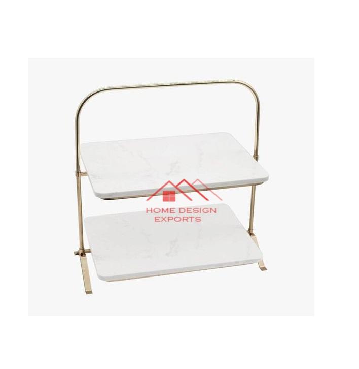 Présentoir de gâteau de tasse de marbre de Finioshed d'or pour le décor d'hôtel à la maison et de restaurants emploient le support de gâteau de marbre