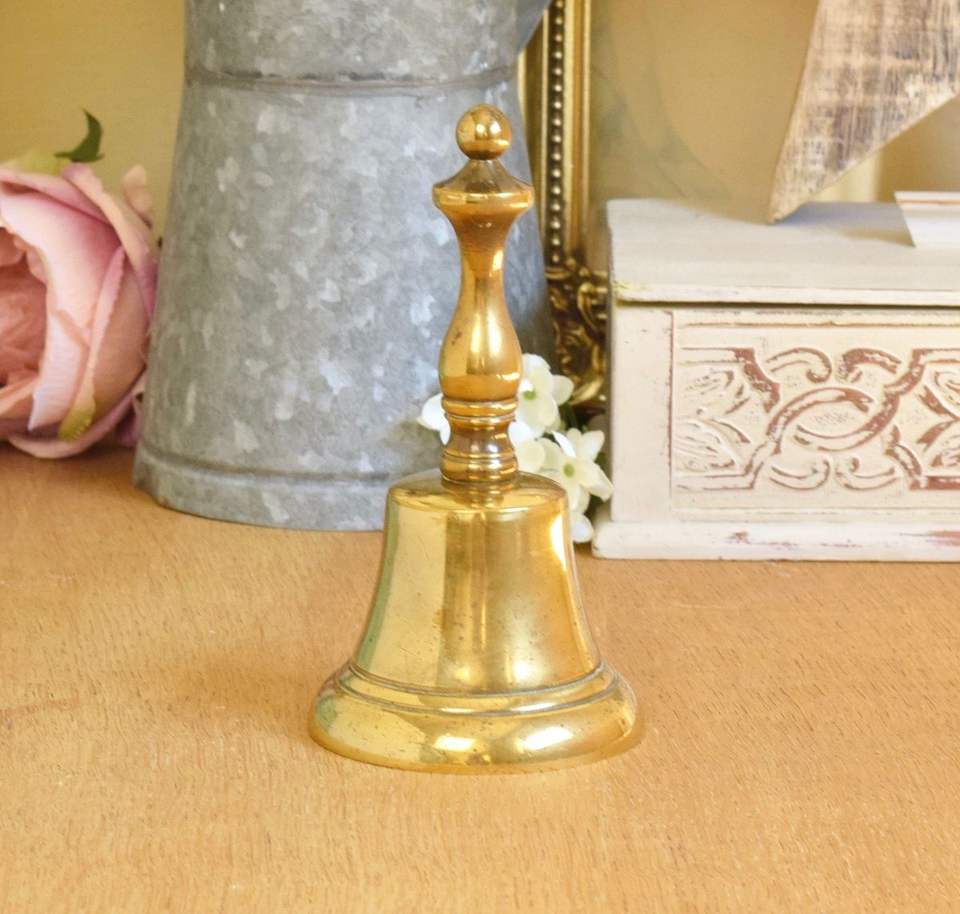 Cloche à main en laiton finition dorée pour service de réception, avec corps métallique durable et son clair