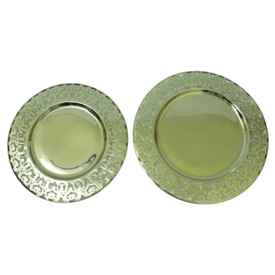 Serveur de table pour hôtel finition dorée Assiettes à dîner sucrées Assiette de présentation dorée pour mariage Bordure en cristal décorative