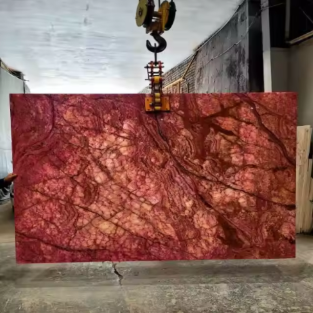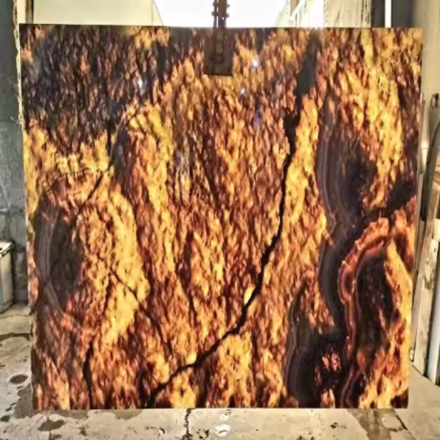 Dalles de marbre rouge feu doré, panneaux en pierre semi-précieuse onyx