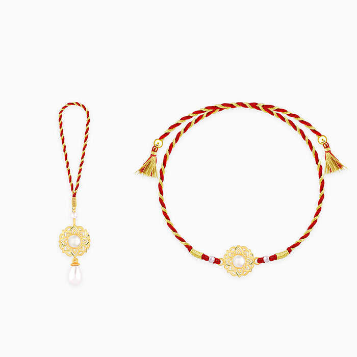 Golden Floral Bhaiya Bhabhi Rakhi Combo Set of 2 Fine Pendants & Charms