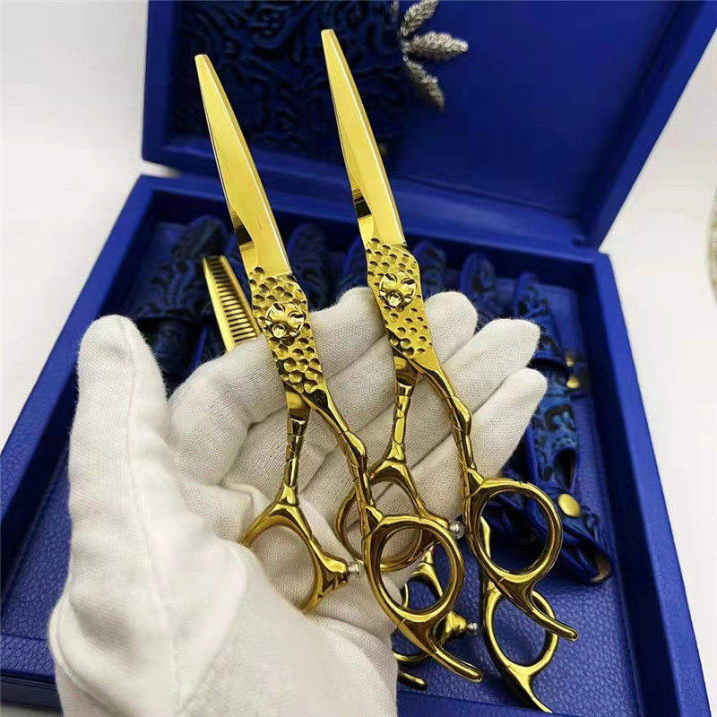 Ciseaux à cheveux dorés de 6 pouces, ciseaux à effiler pour droitiers, utilisation en salon de beauté, fabriqués à Suzhou, modèle Db