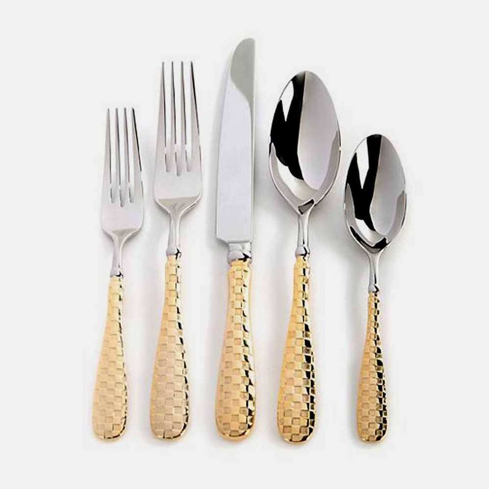 Lot de 5 couverts en acier inoxydable à manche doré en ton argent Vaisselle durable de haute qualité avec design américain moderne