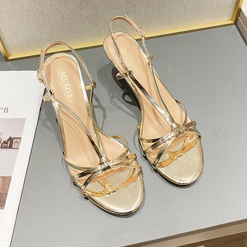 Golden High-Heeled Women'S 2025 New Summer Open-Toe Stiletto Platform Sexy Elegant Hostess Slip-On Genuine Leather French-Style