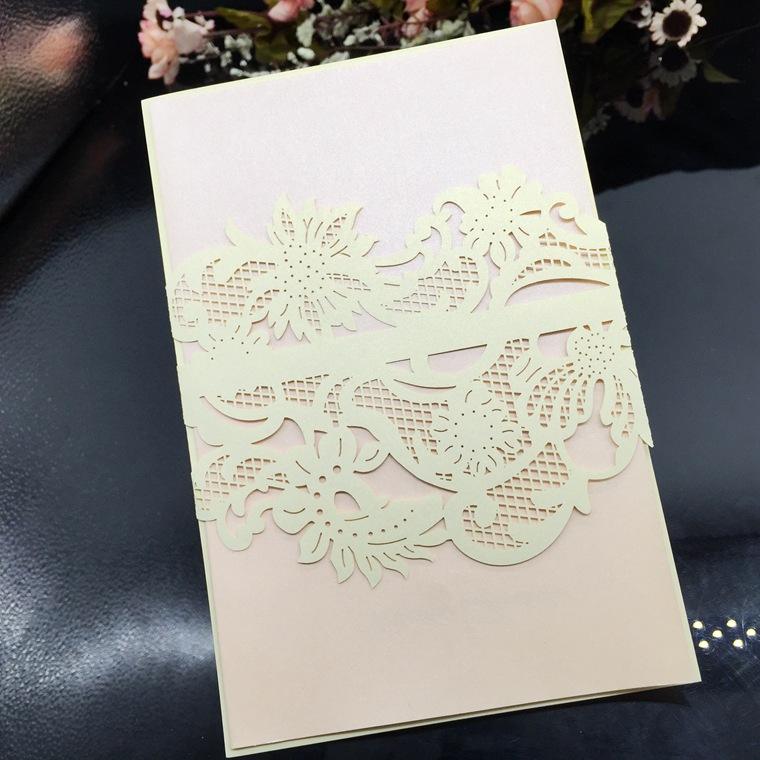 Cartes d'invitation de mariage découpées au Laser, 50 pièces, enveloppe en dentelle dorée, fournitures de mariage