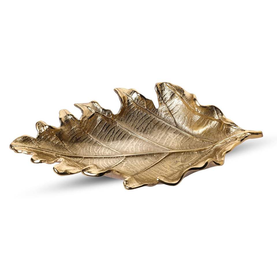 Plateau Design Feuille d'Or Plat Décoratif Moderne pour Décoration de Table de Salon