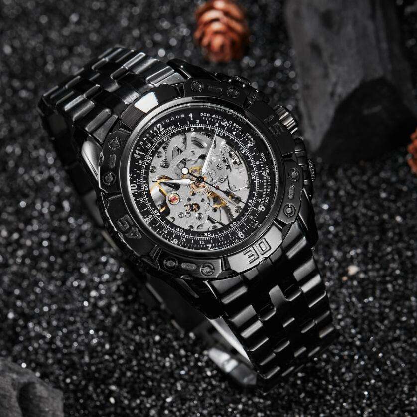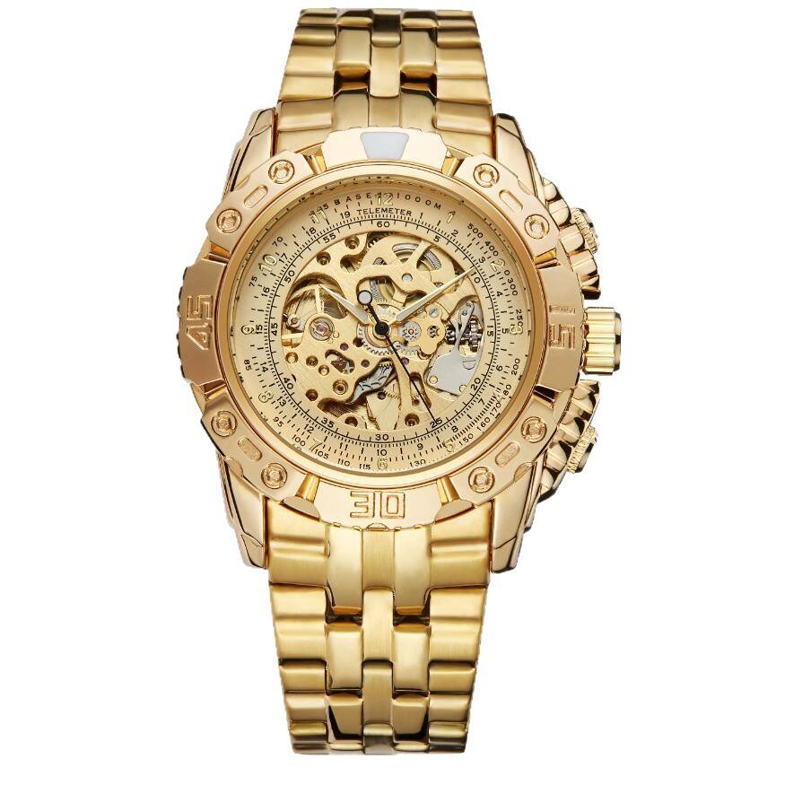 Montre mécanique automatique pour homme en or, bracelet en alliage, fonction tachymètre, boîtier rond de 13,5 mm d'épaisseur, longueur de 21 cm, non étanche
