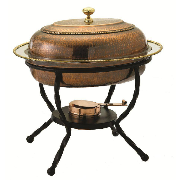 Chauffe-plat en métal doré avec poignée Style différent fait à la main décoratif alimentaire rond en cuivre antique chauffe-plat Style antique