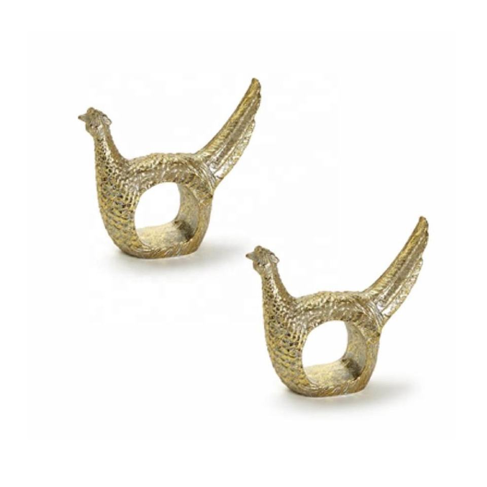 Ronds de serviette dorés avec oiseau sculptural en étain rempli de ronds de serviette en métal cadeau pour la décoration de mariage d'hôtel