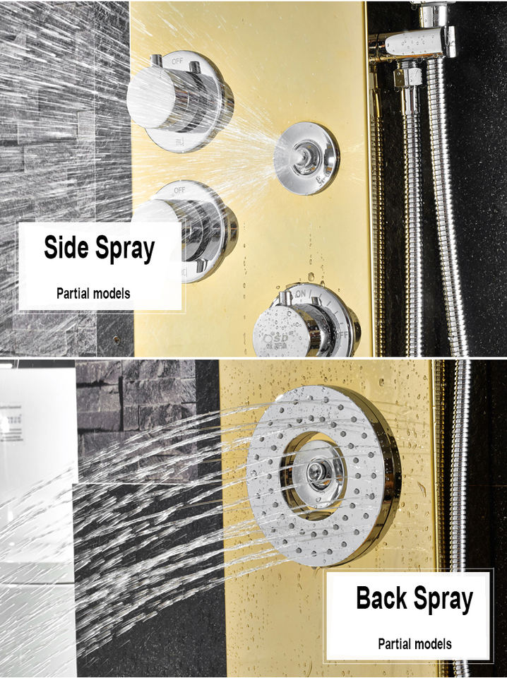 Panneau de douche brossé à colonne en Nickel doré, colonne avec pommeau en acier inoxydable 304, Massage par pluie, colonne de douche à vapeur, en laiton