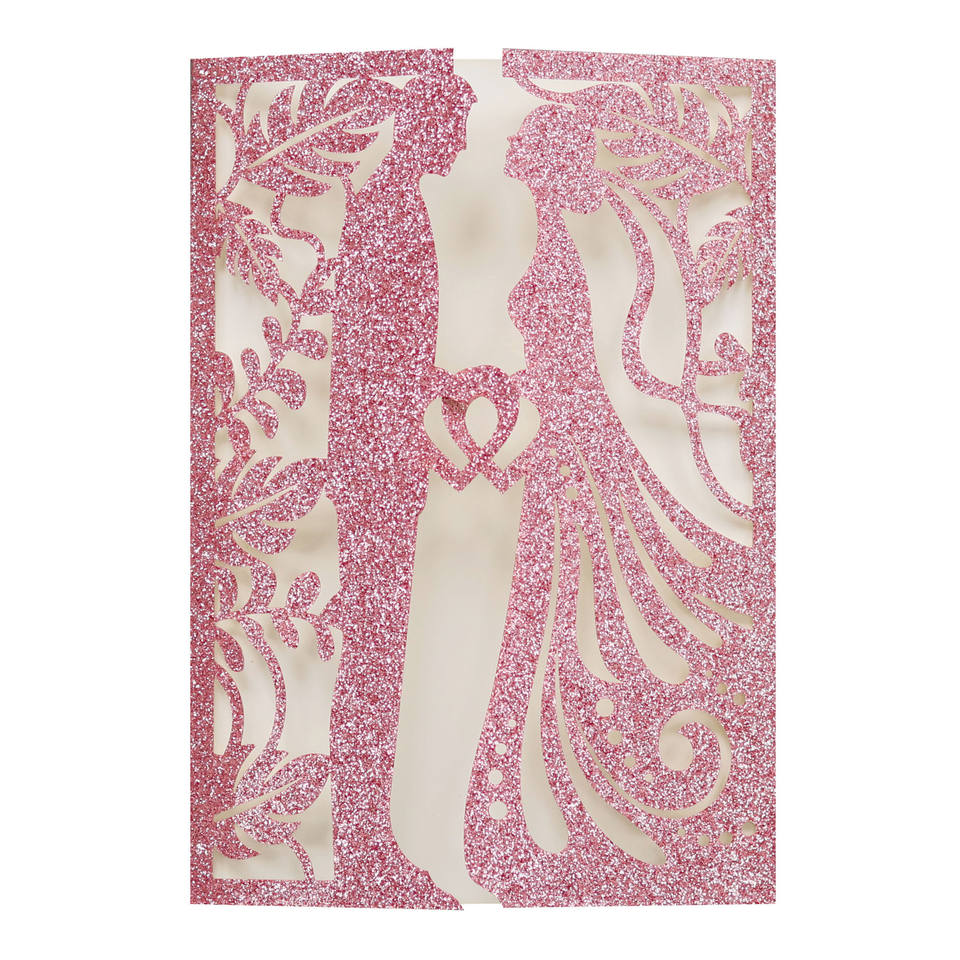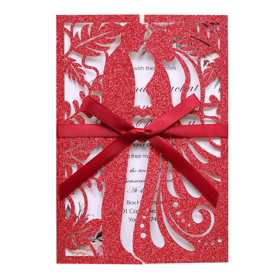 Carte d'invitation de mariage laser en forme de cœur, en papier doré, pour invités garçons et filles, style européen