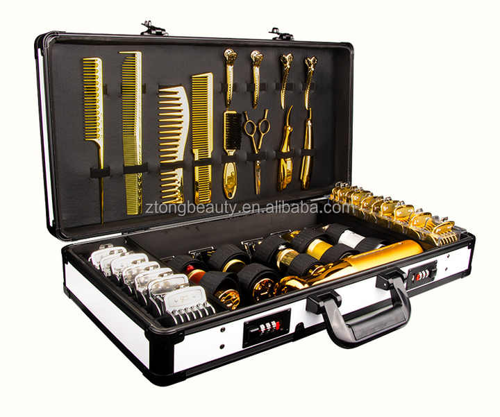 Valise de Coiffeur en PVC Doré et Aluminium avec Serrure Codée, pour Outils de Salon, 55*27*10cm, 4kg, pour Barbier