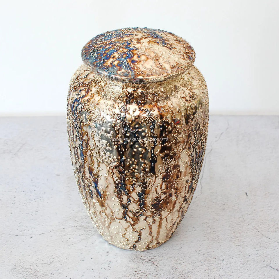 Urne funéraire aux galets d'or Urne funéraire commémorative étincelante fabriquée à la main Cendres humaines adultes Exportateur Fournisseur en vrac Fabricant