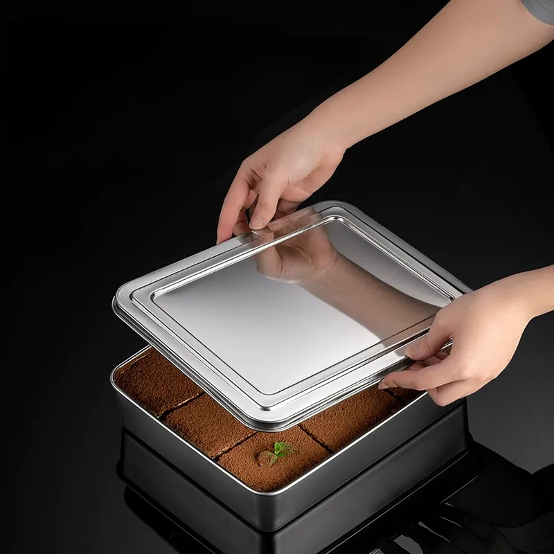 Plaque de service carrée dorée pour tiramisu, plateau à gâteau, moule à pain, plaque de cuisson en acier inoxydable argenté, plaque de barbecue, assiette à snacks