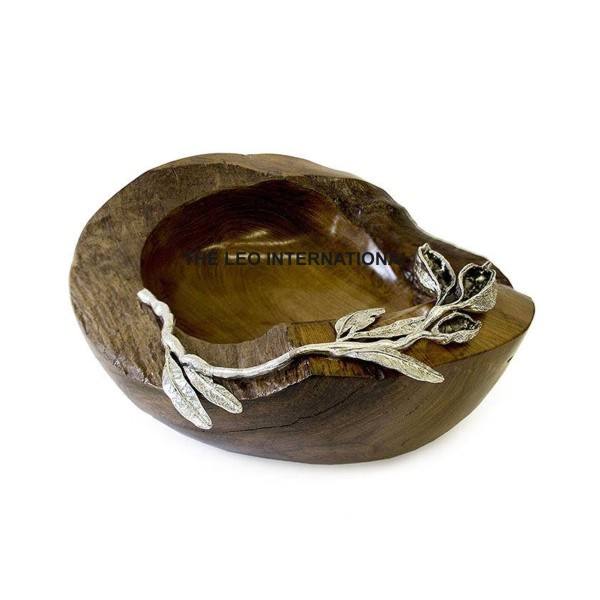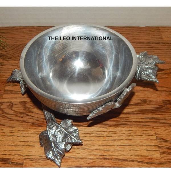 Poignées latérales en forme de feuille plaquée or Bol décoratif en métal aluminium Meilleure qualité Nouveau bol blanc
