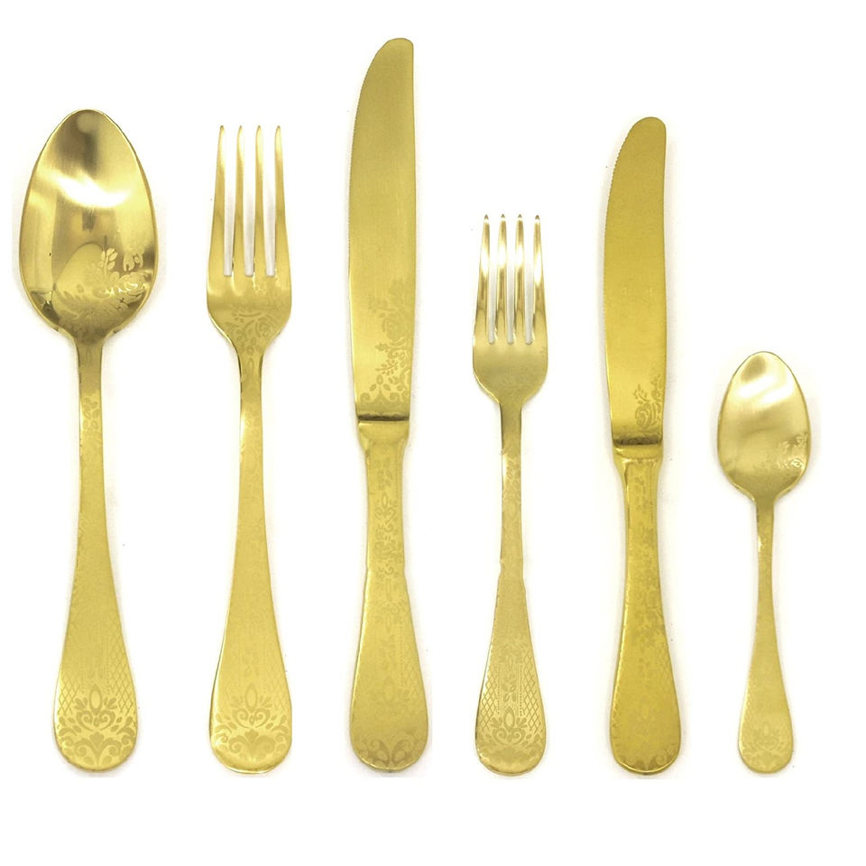 Ensemble de couverts de luxe plaqué or gravure beaux couverts comprenant fourchette/couteau/cuillère