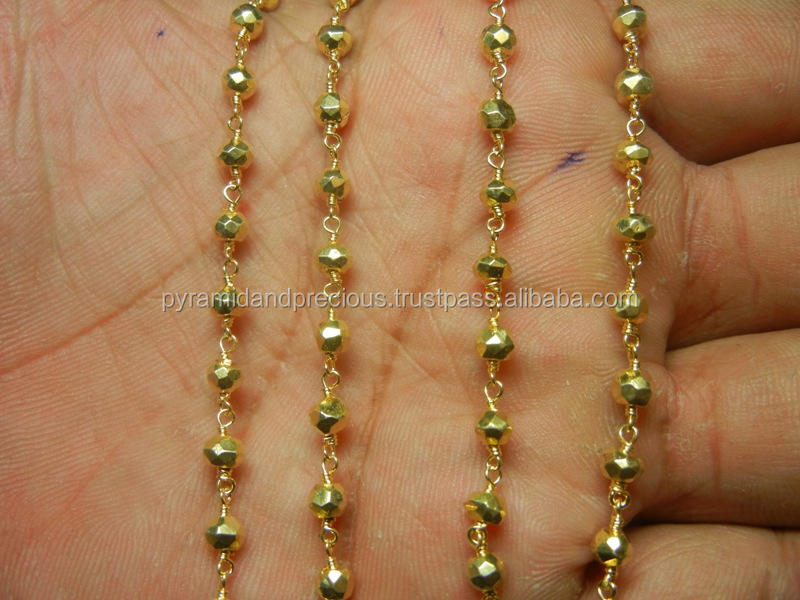 Chaîne perlée enveloppée de fil de style de chapelet de pierre gemme de pyrite d'orNom