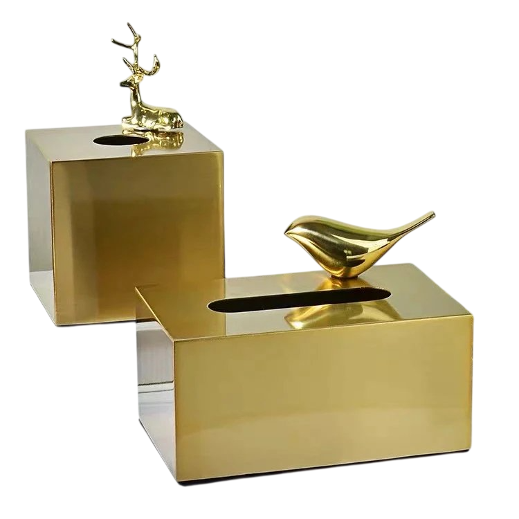 Boîte à mouchoirs rectangulaire dorée en métal, support décoratif en acier inoxydable pour la maison, accessoires de décoration de salle de bain