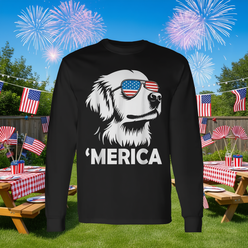 T-shirt à manches longues Golden Retriever 4th Of July Merica