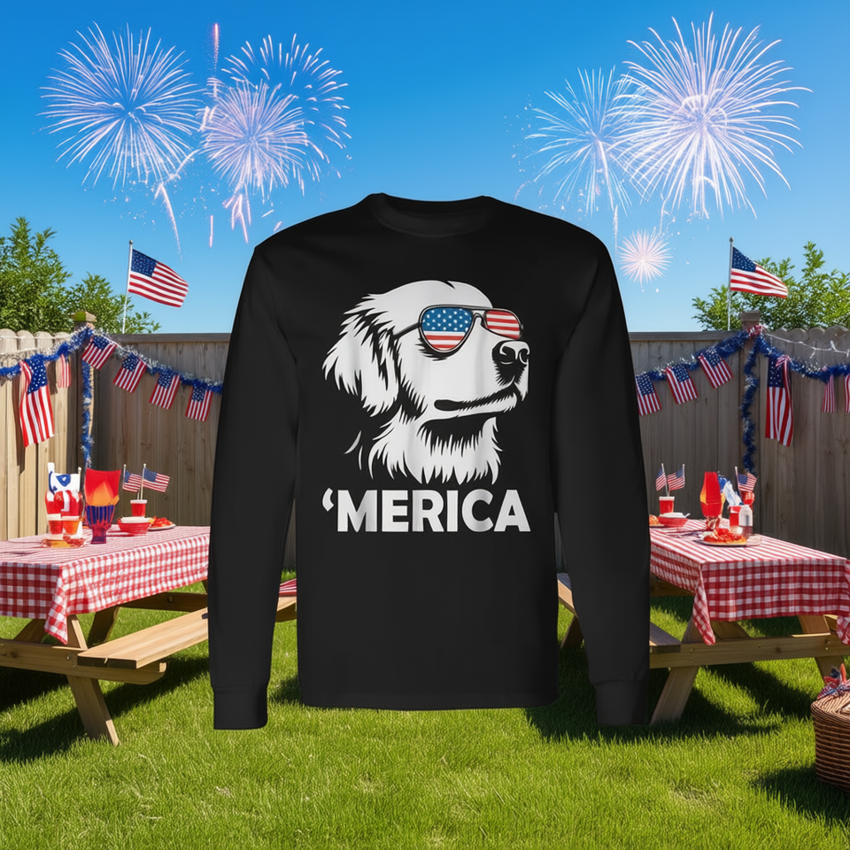 T-shirt à manches longues Golden Retriever 4th Of July Merica