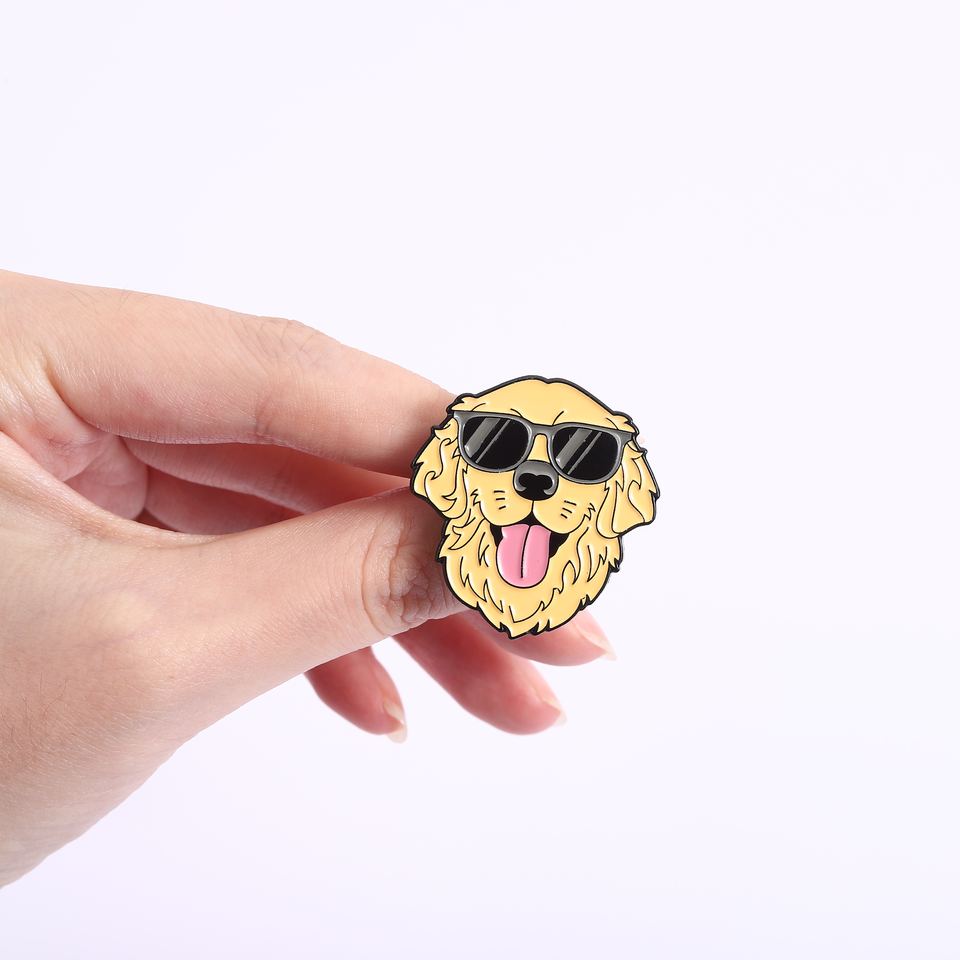Épinglette en émail Golden Retriever, Berger Allemand, Husky, chien cool avec lunettes de soleil, broche, badge de revers, bijoux mignons, cadeau en gros