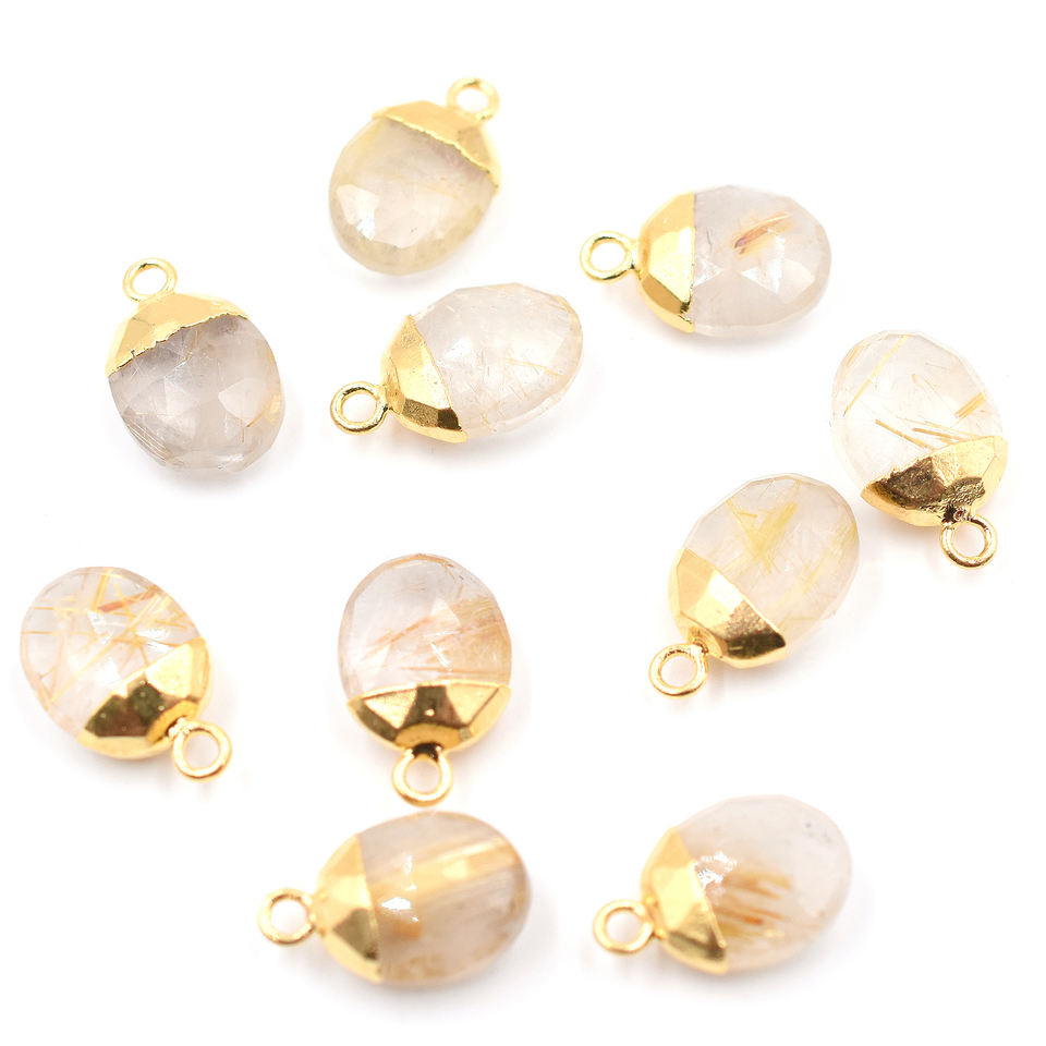 Nom du produit:Pendentif ovale en quartz rutile doré plaqué or