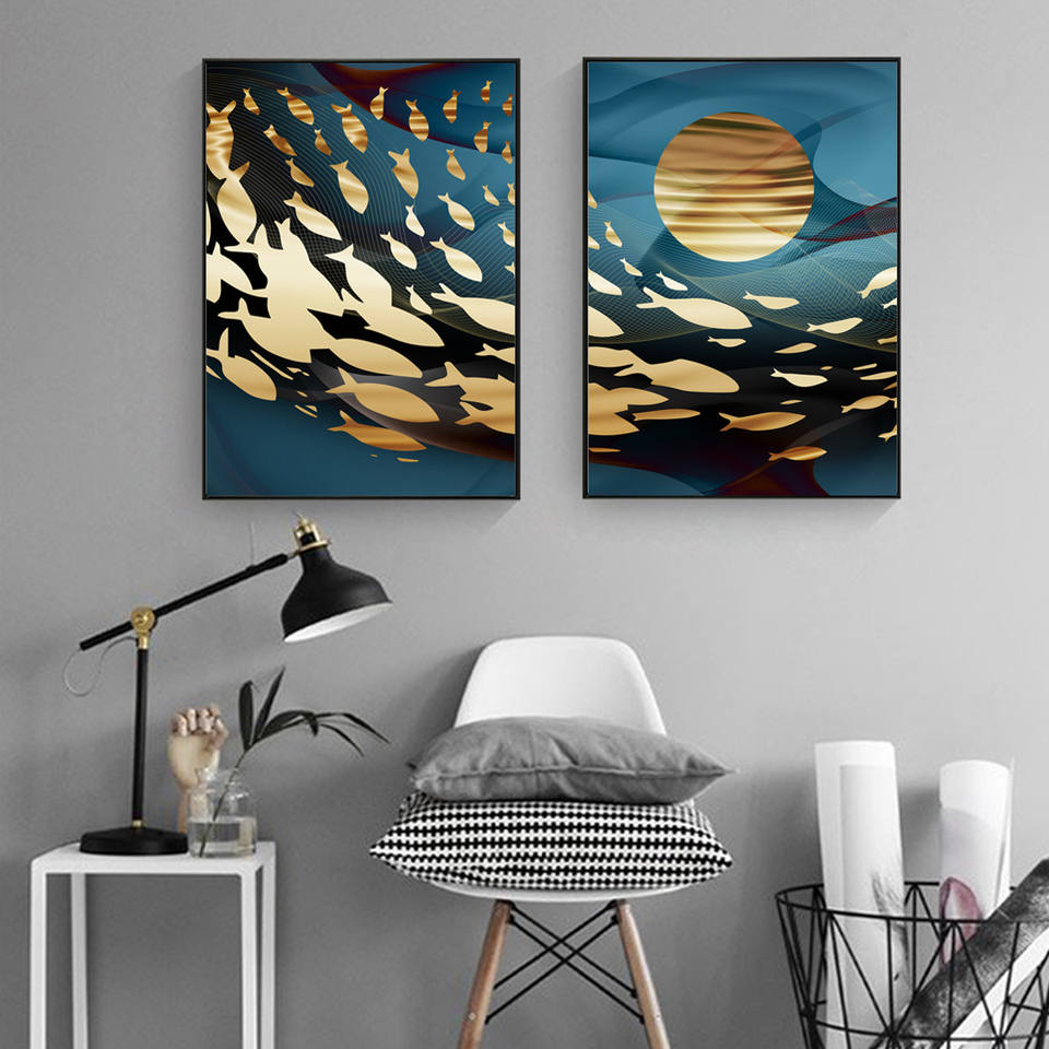 Golden Shui Koi – affiche en toile de poisson, image murale d'art, décoration de la maison, cadeau, peinture à l'huile sur toile, affiches imprimées, image d'art