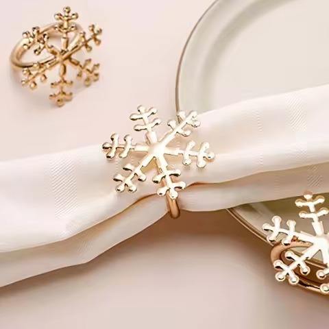 Anneaux de serviette en métal en forme de flocon de neige doré pour fête - Accessoires de décoration de table modernes et écologiques