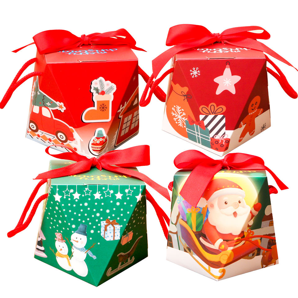 Fournisseur d'or Boîte cadeau de Noël personnalisée Panier en papier en matériaux recyclés avec ruban pour bonbons gelée avec logo sur le thème de la veille