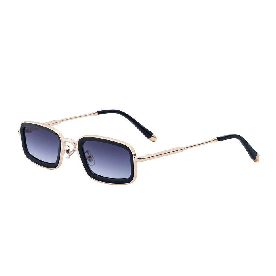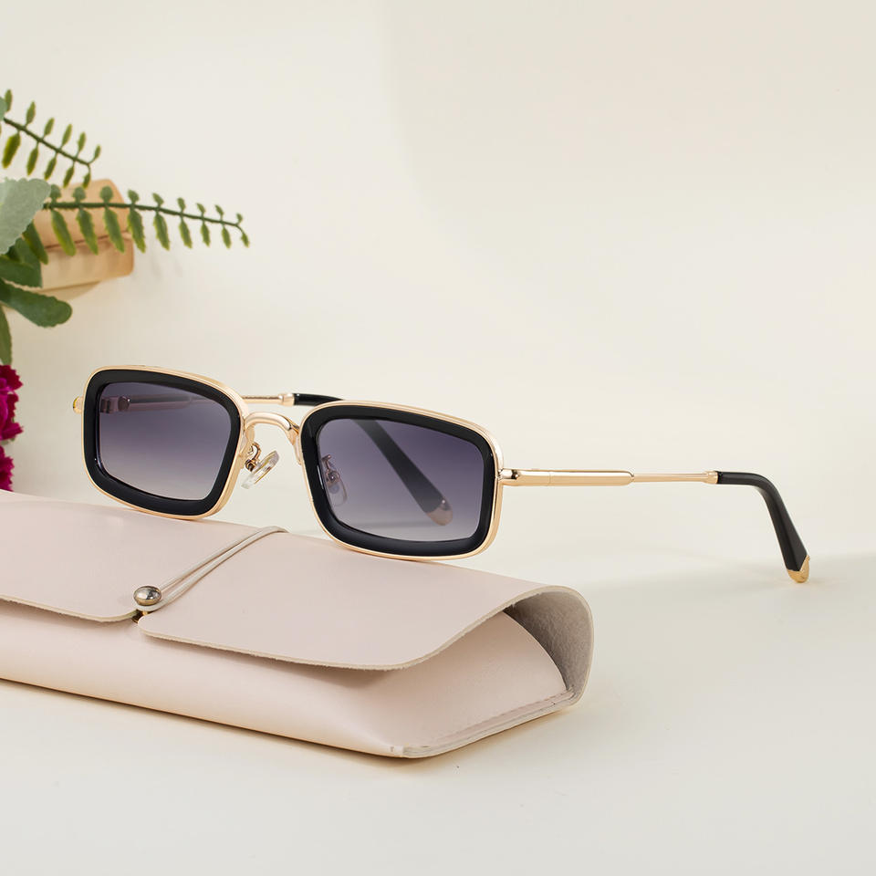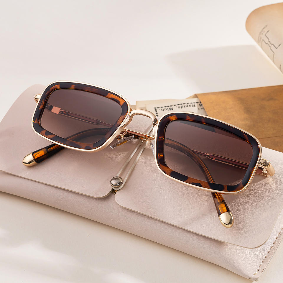 Golden Tea Gray Metal Square Sunglasses For Women UV400 Protection Class 2 Sunshades WF-5G189