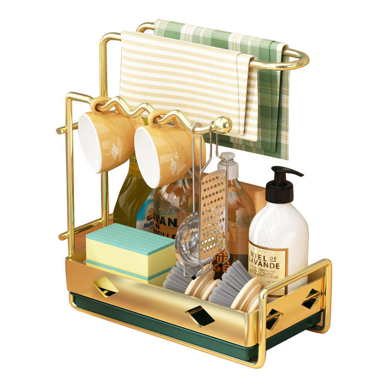 Égouttoir mural doré avec plateau, organisateur de rangement multifonctionnel pour évier de cuisine, égouttoir suspendu de forme carrée