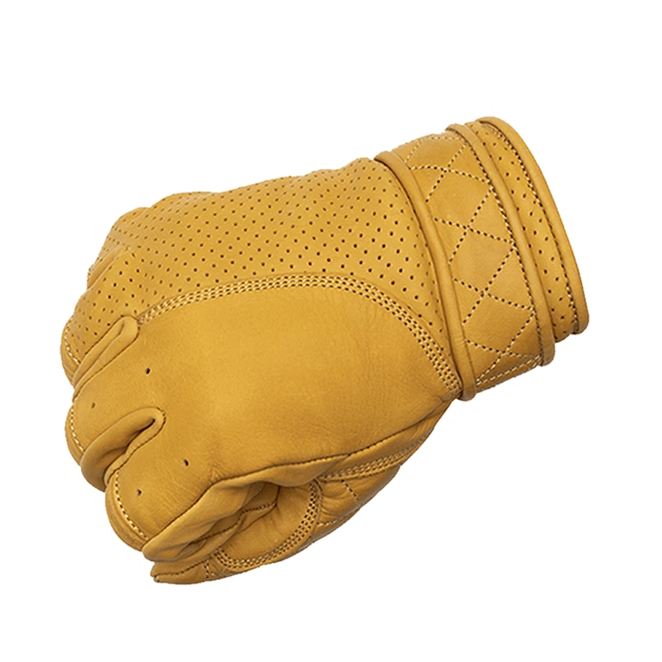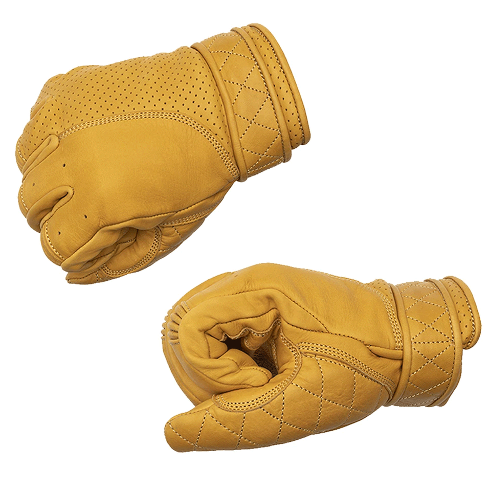 Golden Yellow Leather Short Classic Motorcycle Gloves Motorcycle Auto Racing Wear Genuine Leather Gloves For Men