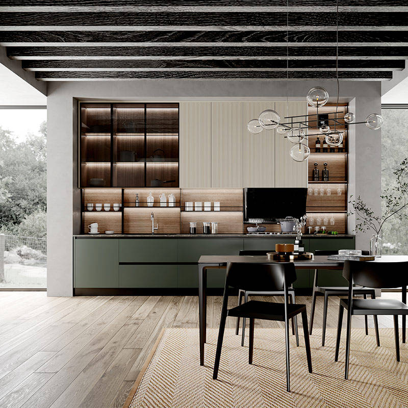 GoldenHome Armoires de cuisine Table de cuisson intégrée moderne ouverte Armoire personnalisée Laque Panneau de porte Pierre de quartz Ménage Personnalisable