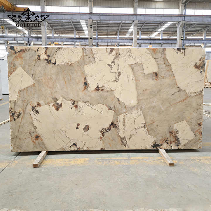Goldtop 7017 Pandora PD Calacatta Gold Pierre Artificielle Blanche Polie Grande Dalle Taille Personnalisée Épaisseur Garantie 5 Ans Moderne