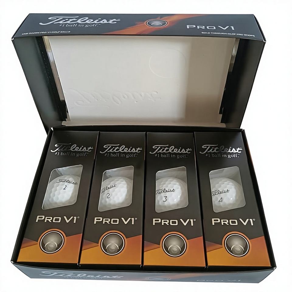 Balle de golf PRO V1 à deux couches en Surlyn pour la compétition et l'entraînement, avec ligne de visée améliorée, écologique, longue distance, lot de 4, avec logo