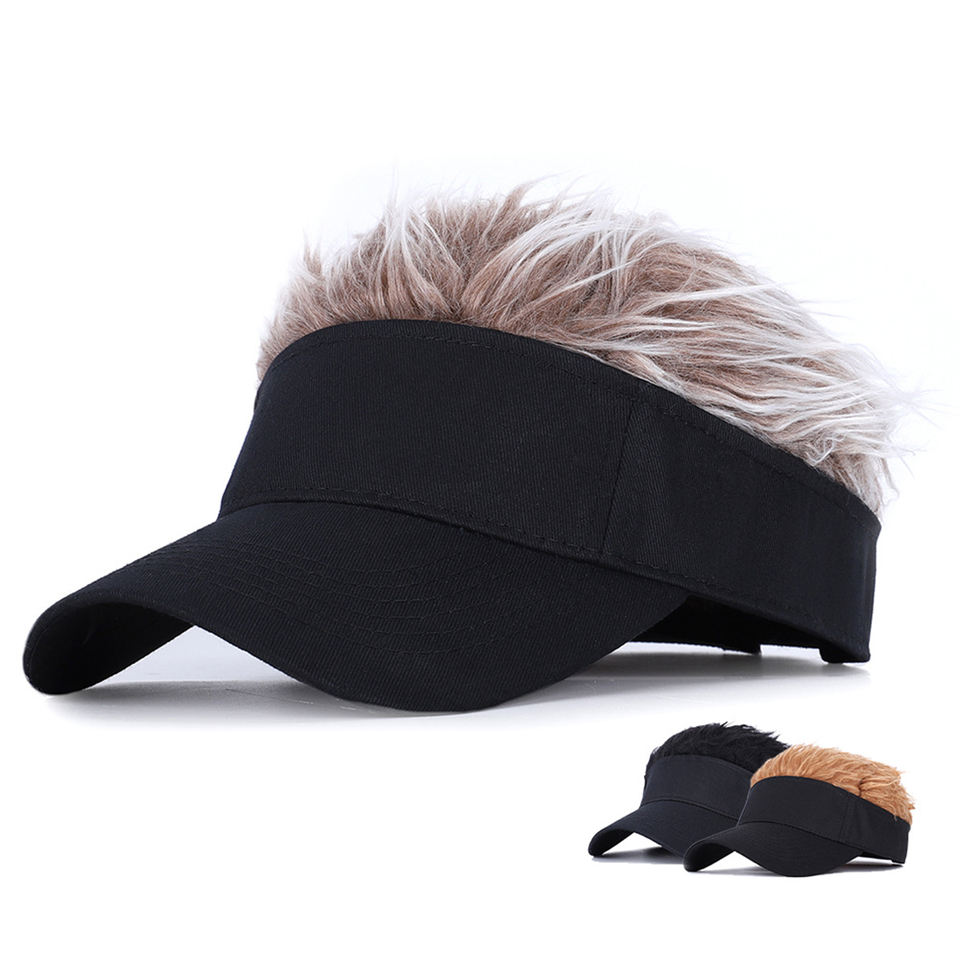 Casquette de golf avec perruque intégrée, visière solaire amusante, chapeau à cheveux effilochés pour hommes et femmes