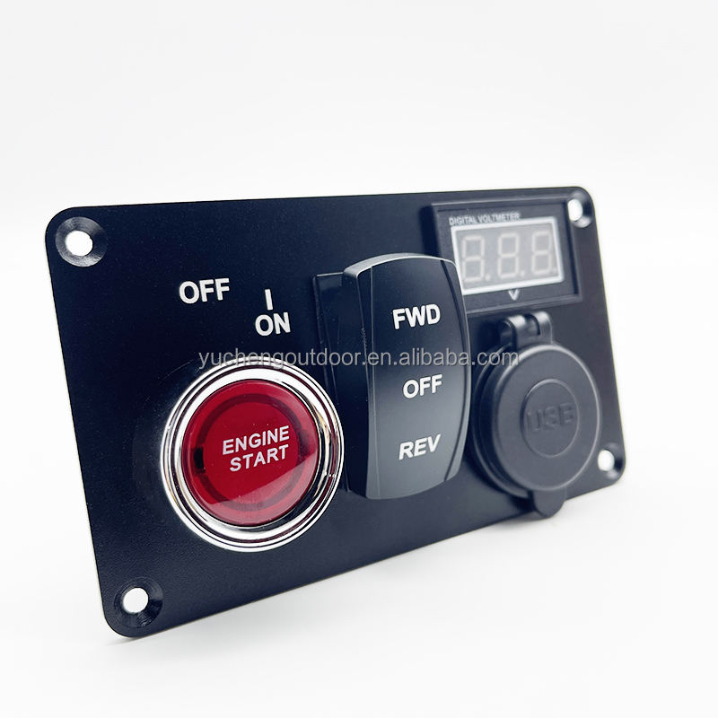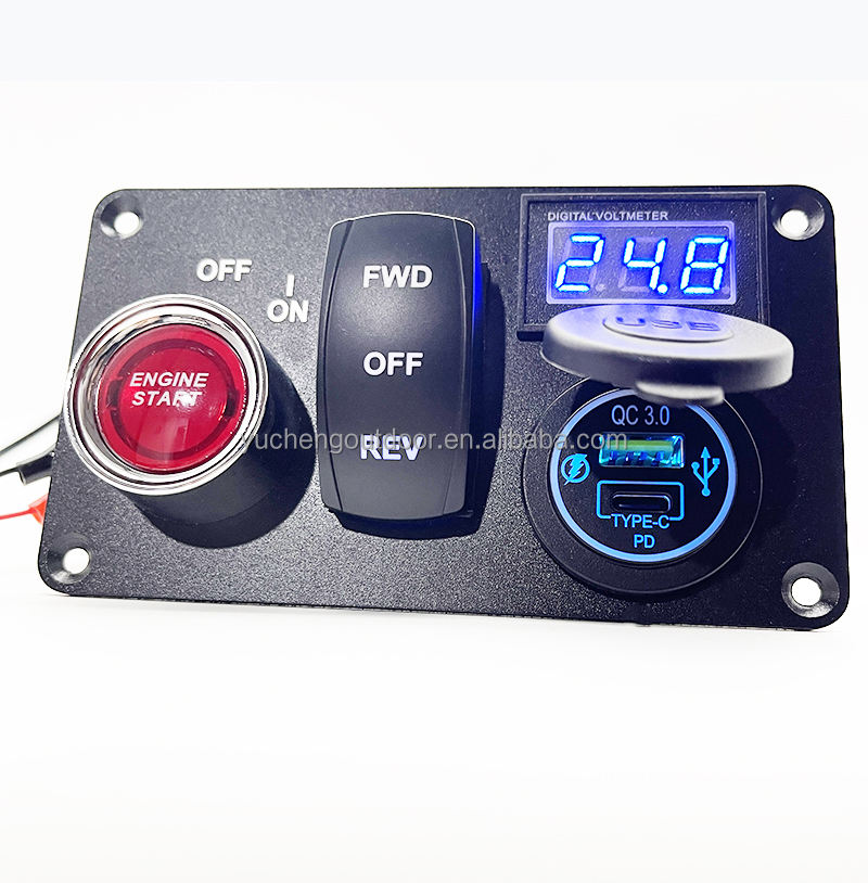 Commutateur à bascule pour panneau de console de chariot de golf 9V-48V CC, marche/arrêt, marche arrière, avec chargeur rapide QC3.0 + Type C et voltmètre numérique LED