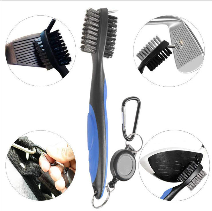 Nettoyant pour club de golf avec mousqueton en aluminium rétractable qui se fixe facilement au sac de golf Brosses de nettoyage pratiques