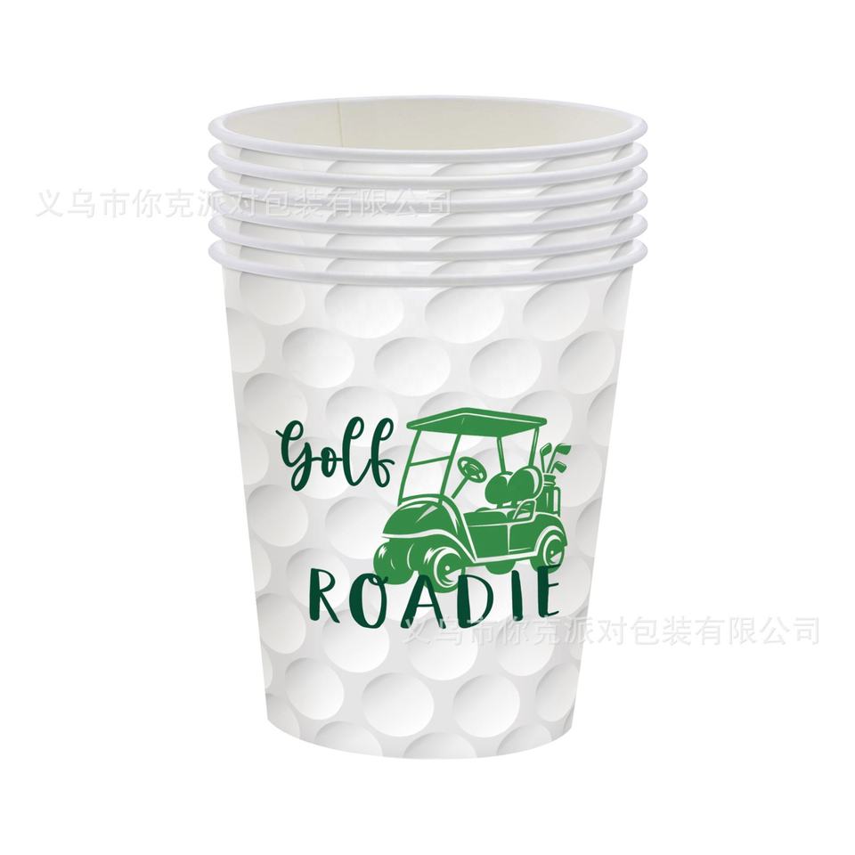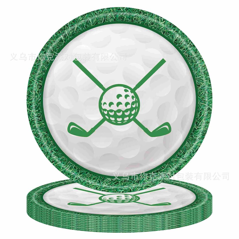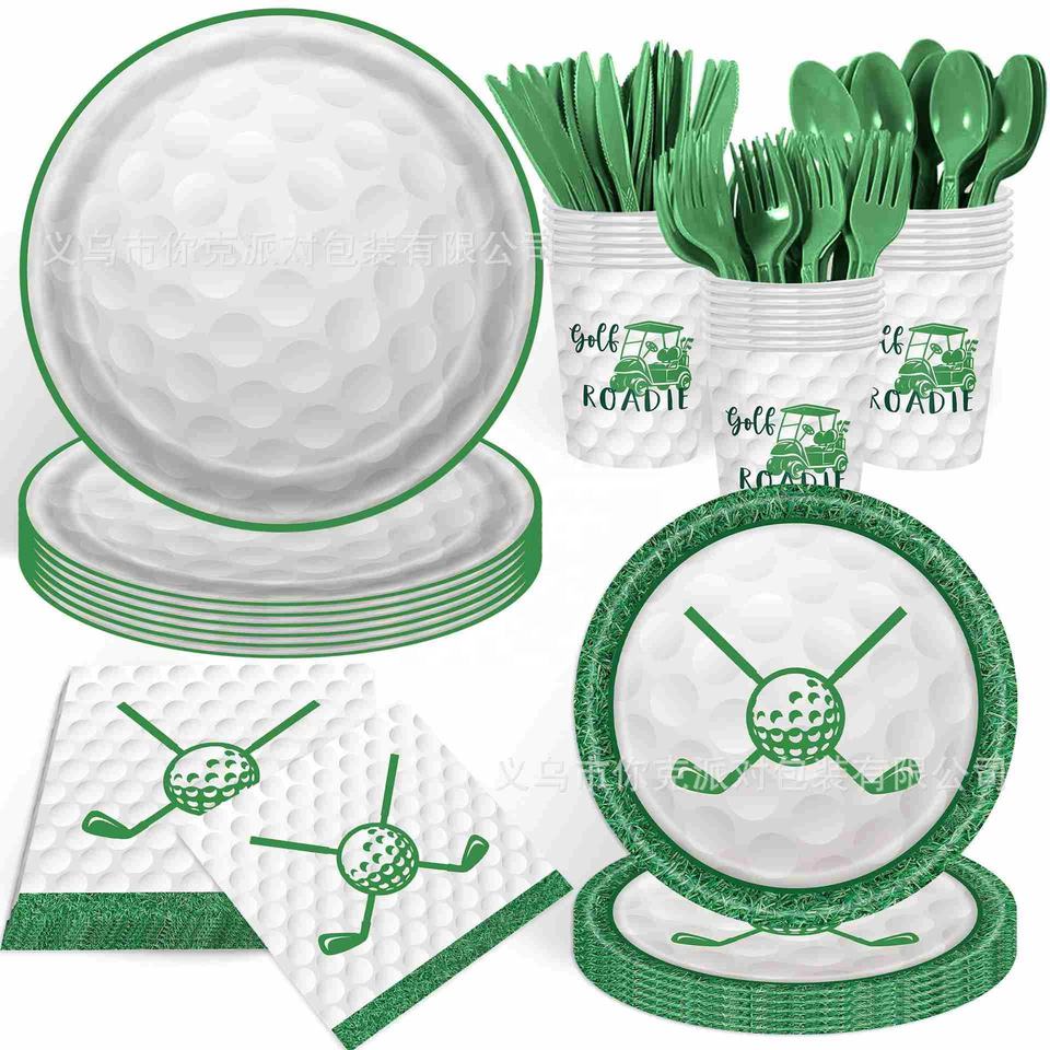 Ensemble de fournitures de fête jetables en papier pour la décoration des fêtes, avec des gobelets en papier, des assiettes en papier et des serviettes en papier, sur le thème du parcours de golf