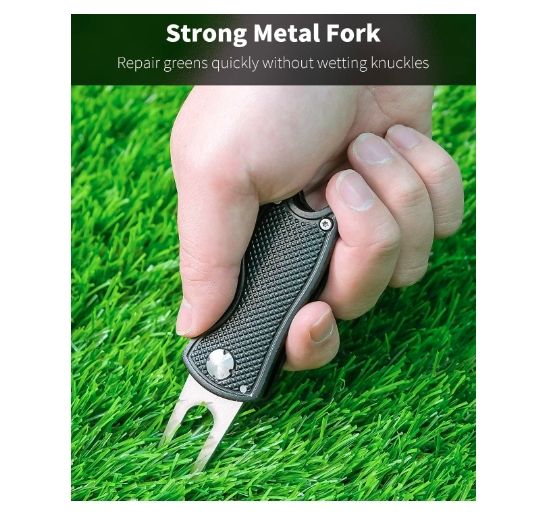 Outil de réparation de divot de golf pour les golfeurs Outil vert en métal pliable Marqueur de balle d'alignement de putt avec poignée robuste en alliage d'aluminium