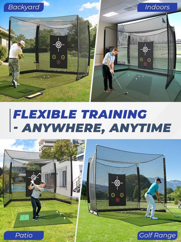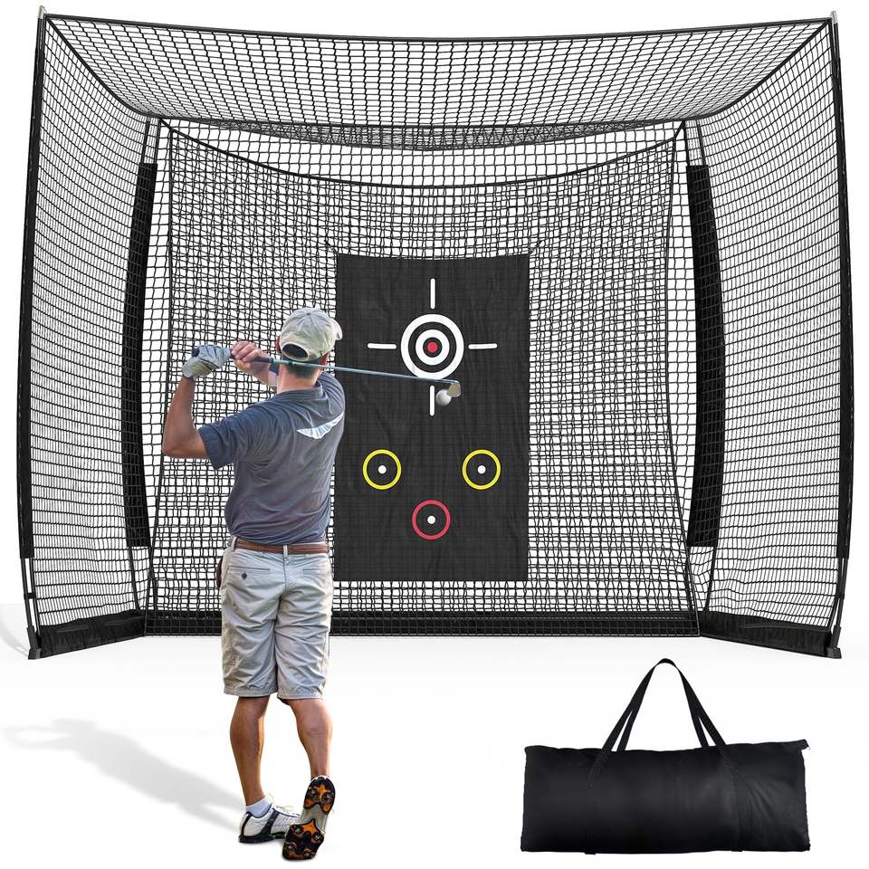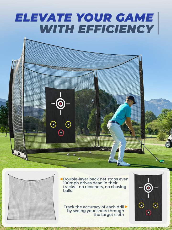 Cage de frappe de golf robuste avec filet d'entraînement double couche et toile cible pour jardin, intérieur et extérieur