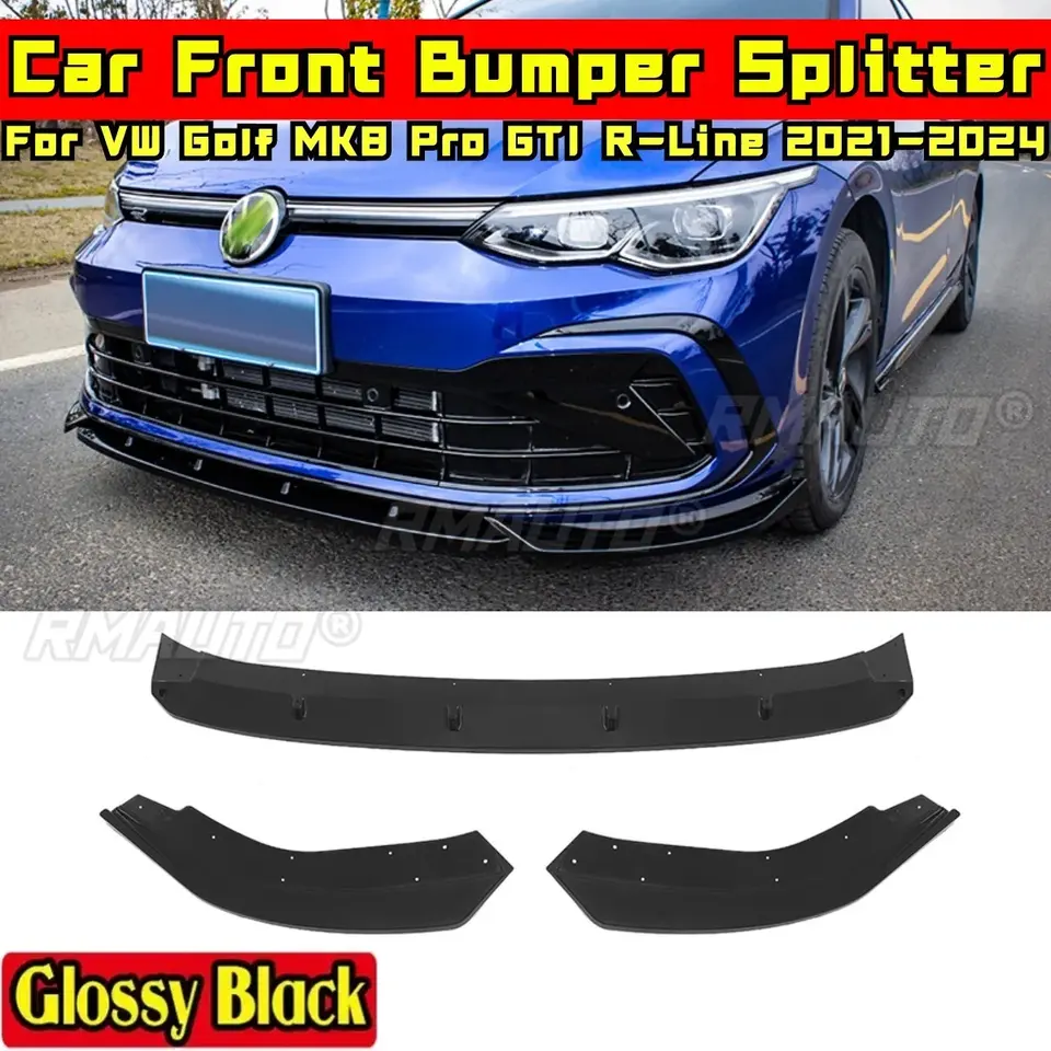 Kit carrosserie Golf MK8 Pro GTI R-Line, séparateur de pare-chocs avant, lèvre noire brillante pour VW Golf MK8 Pro GTI R-Line 2021-2024, accessoires de voiture