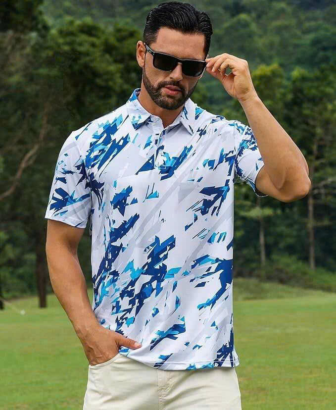 T-shirt de polo de golf avec tissu anti-rides en maille respirante, matériau à séchage rapide sans odeur et confort extensible dans les quatre sens