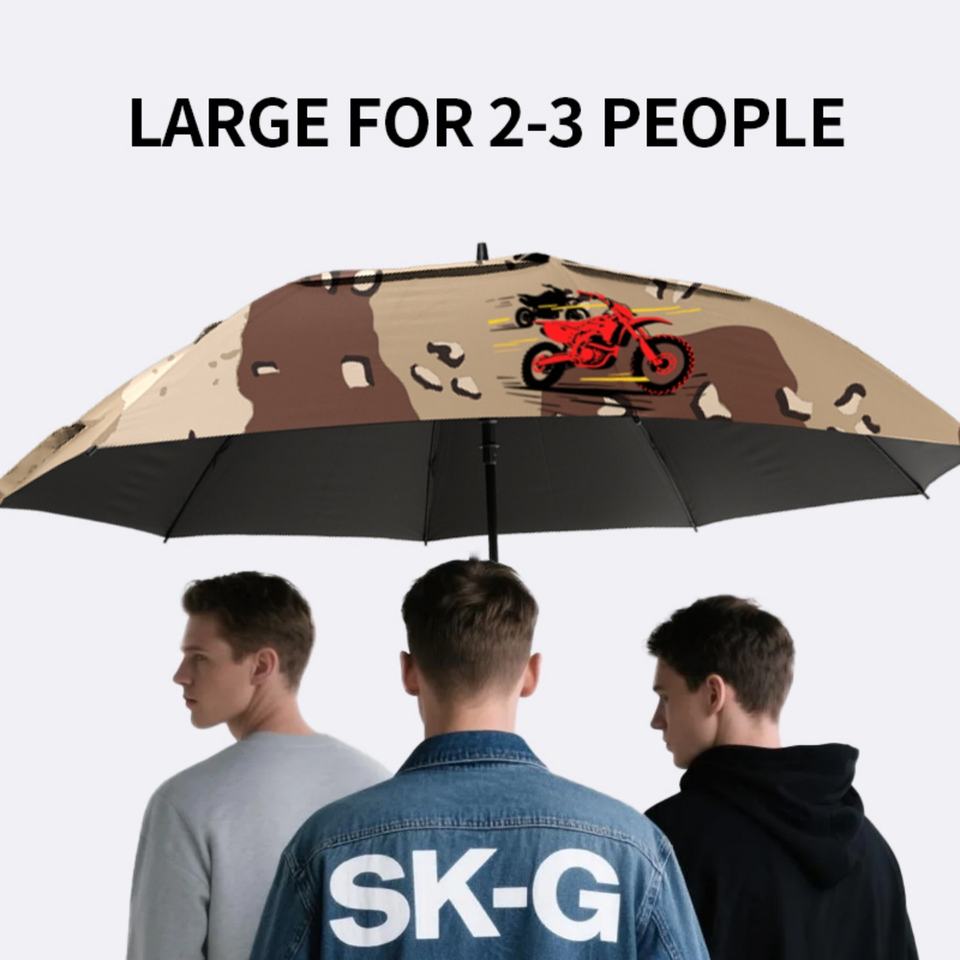 Parapluie de golf tout-terrain camouflage rouge moto dessin animé tissu durable coupe-vent ouverture automatique essentiel pour les sports de plein air et les motards