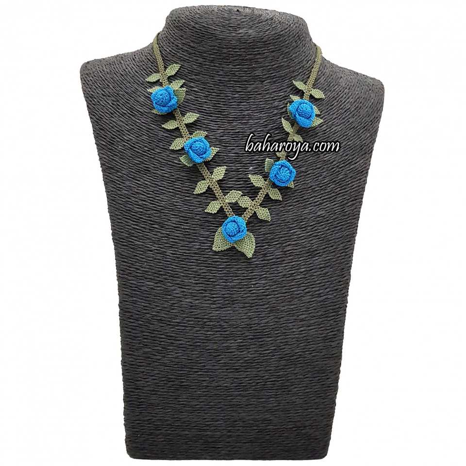 Goncagül Kolye Mavi İğne Oyası Stilinde Moda Halsız