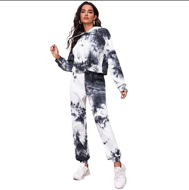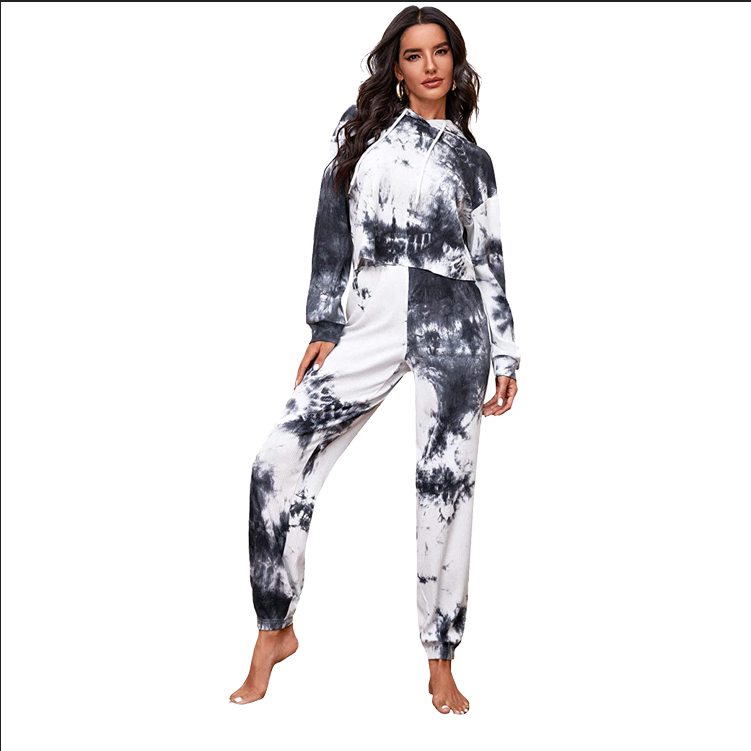 Bonne prise femmes pyjama ensemble maison porter survêtement léger polaire confort toucher pur coton cravate teinture sweat survêtement