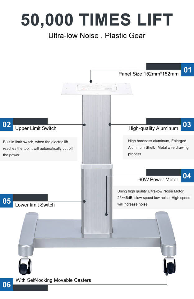 Colonne de levage électrique à hauteur réglable, bon rapport qualité-prix, DC24V MAX 2250N 3000 tr/min, moteur à balais, ventilateur à aimant permanent